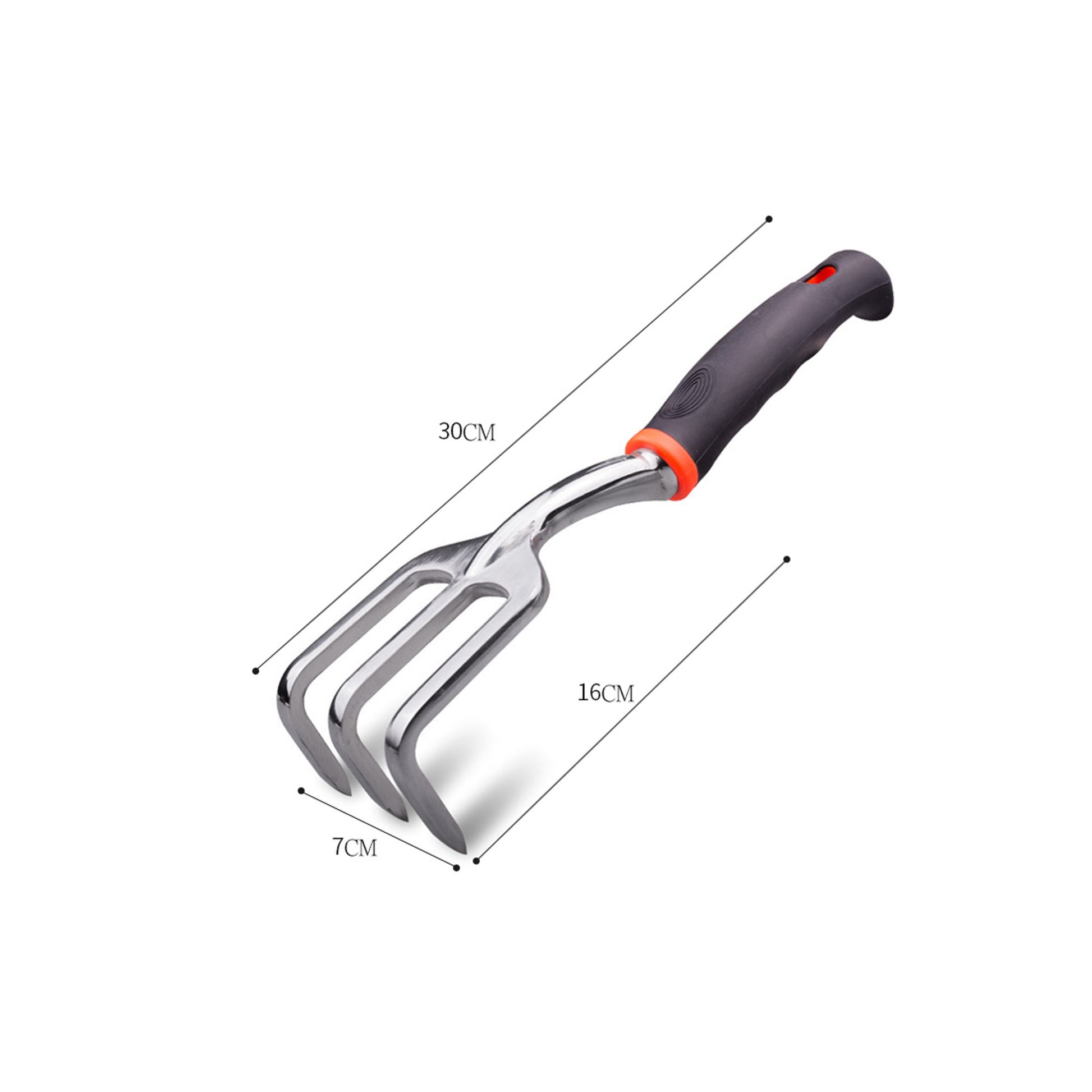 Includes hand trowel, transplanting shovel with depth scale, and cultivator rake — perfect for all basic garden tasks.